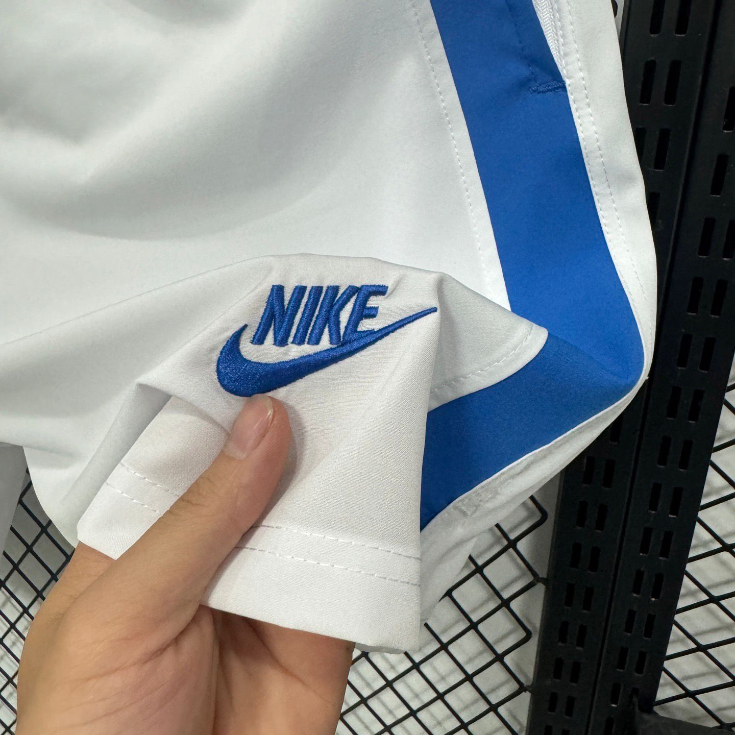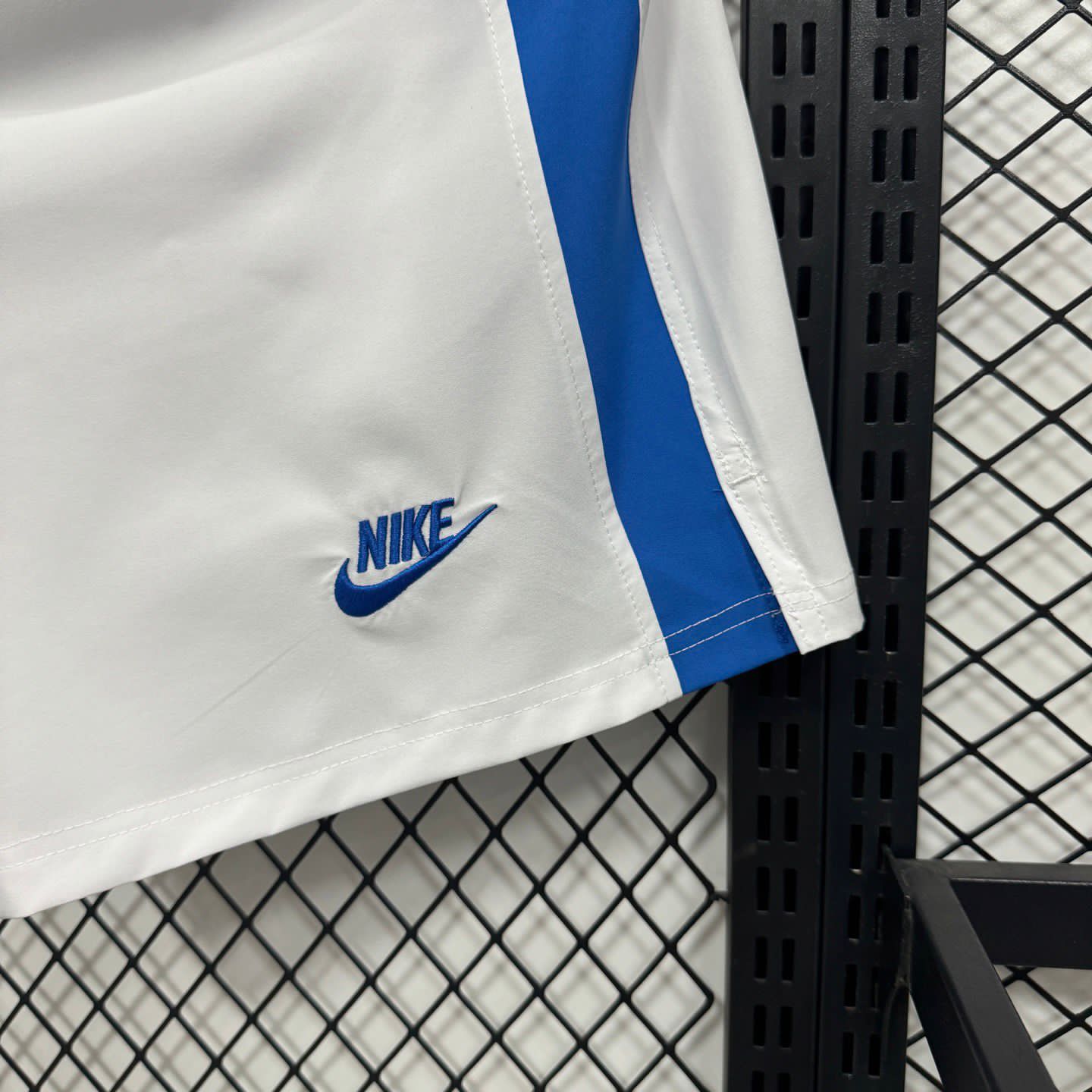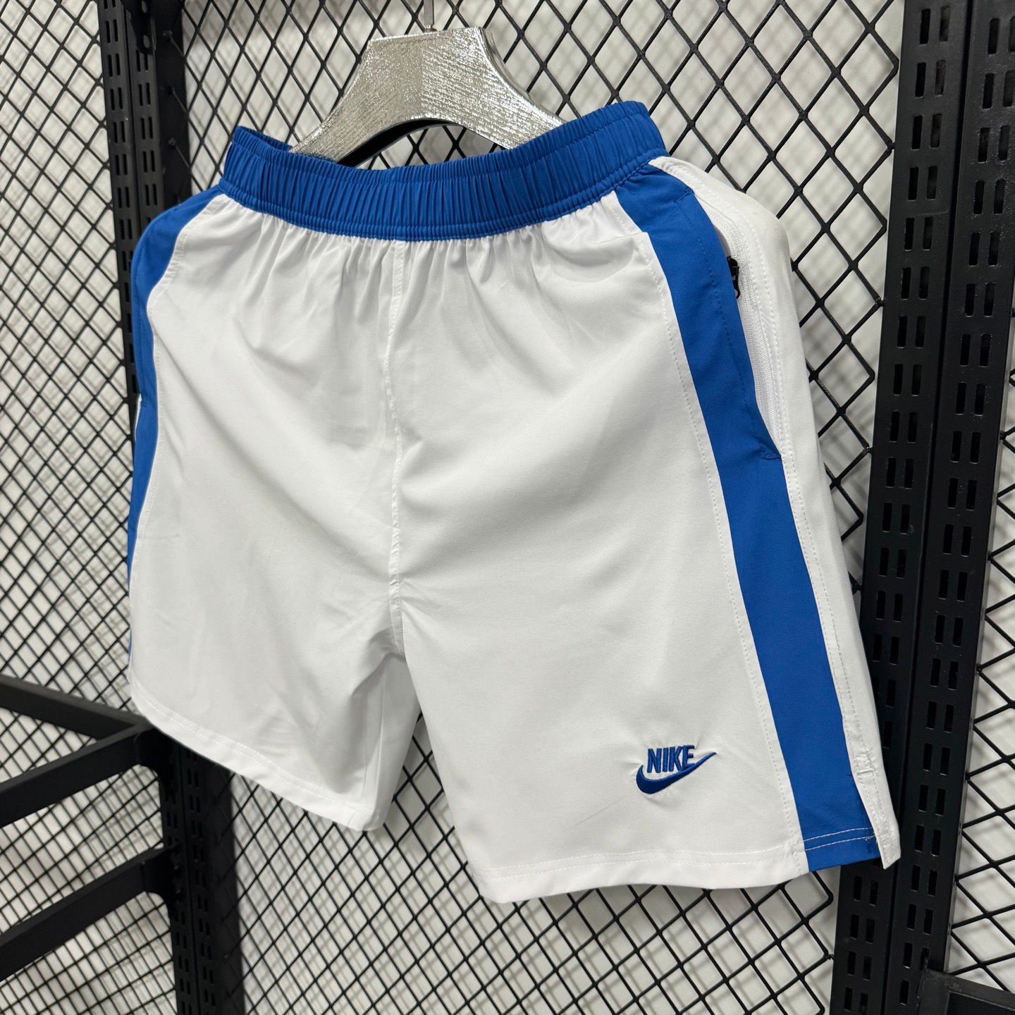 Nike club flow football shorts in white with blue side panels